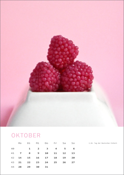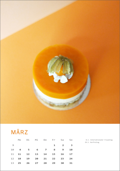 Wandkalenders mit den süßen Verführungen. Von Gummibärchen bis zu Törtchen wurden im Fotostudio für jeden Monat Naschereien aufwendig inszeniert. Durch Lichtsetzung und Farbwahl sind Bilder